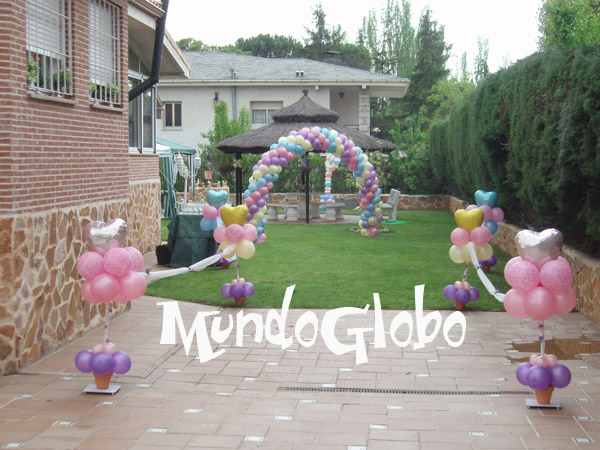 hasta el arco de cuarteto de globos haciendo giro que sirve de