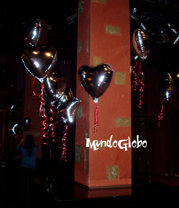 corazones color plata tamaño gigante. Y los corazones flotan